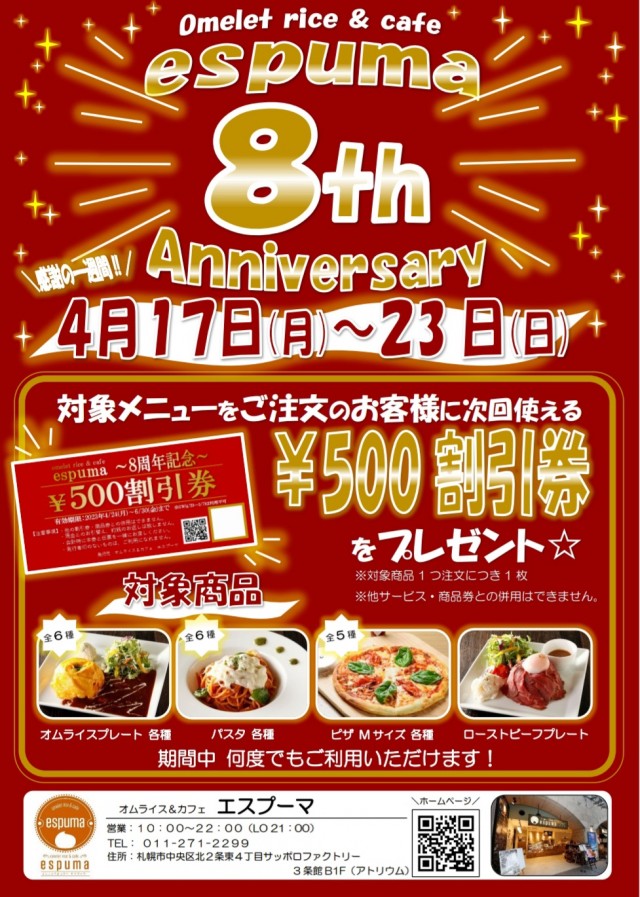 オムライス&カフェ エスプーマ【満8周年記念イベント開催】