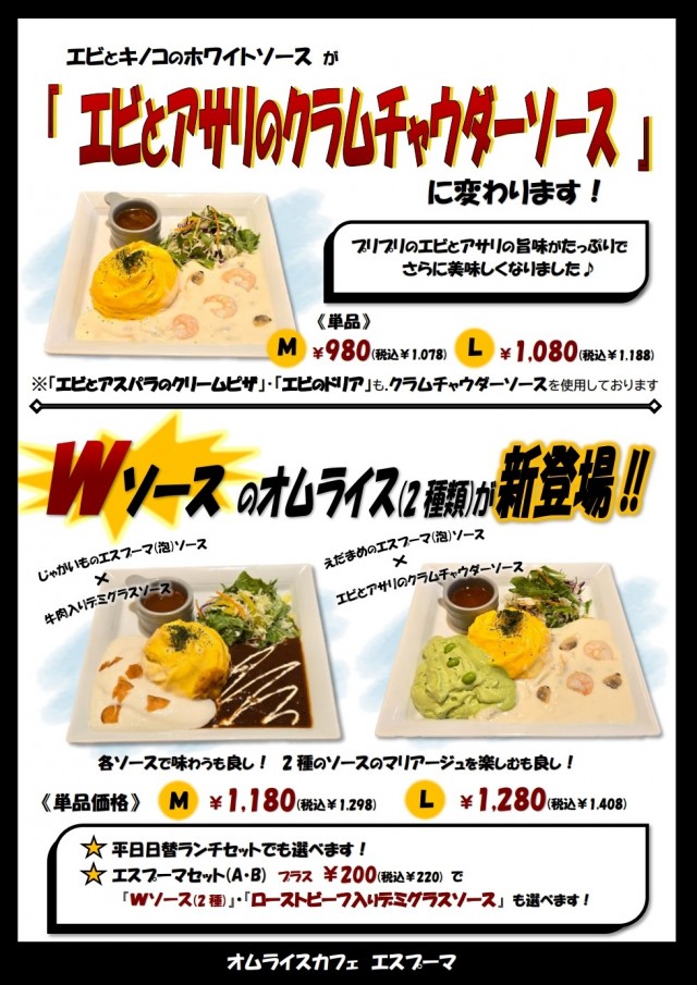 【Wソースのオムライスプレート(2種類)】が新登場!!