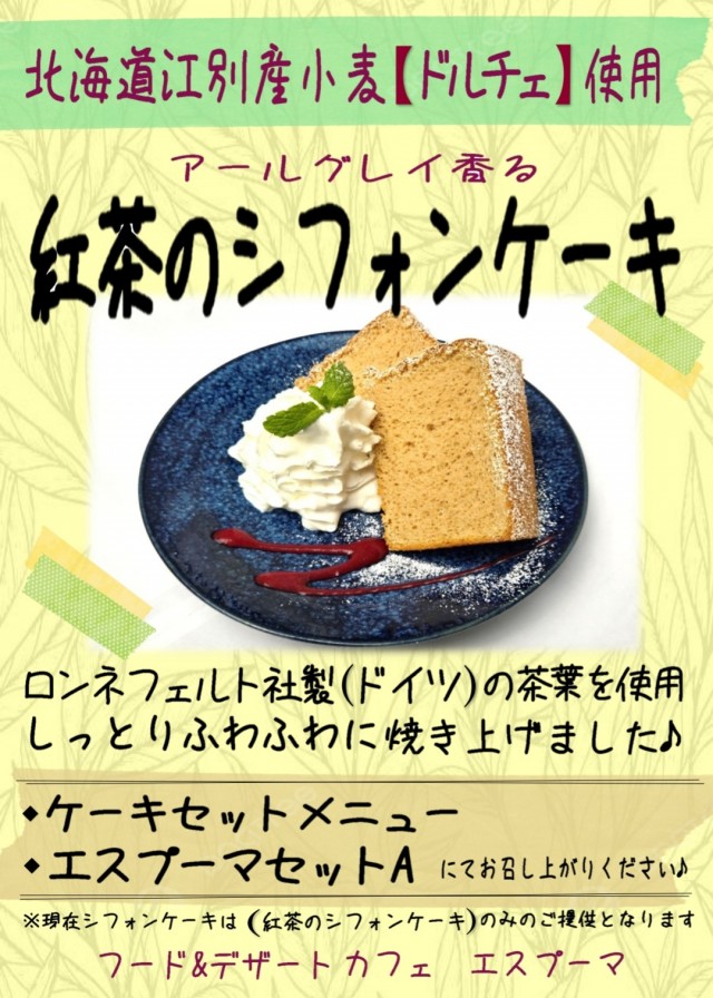 アールグレイ香る【 紅茶のシフォンケーキ】ご提供中♪